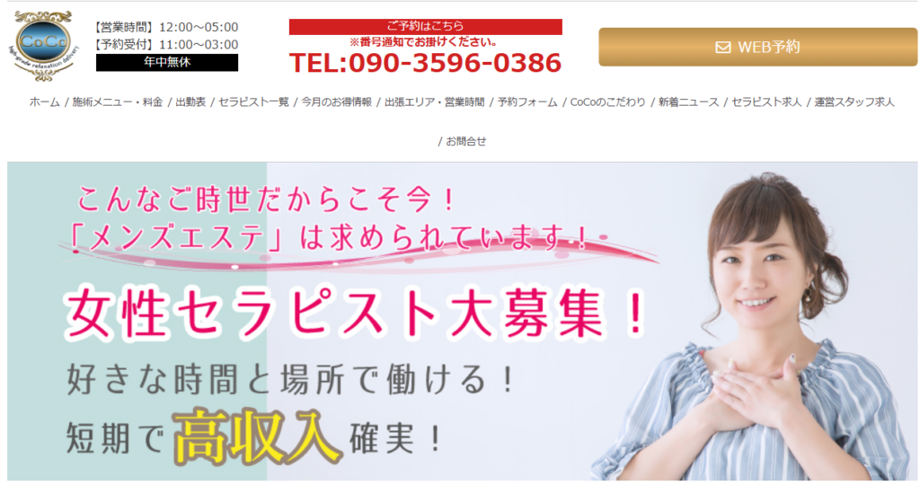 川崎の出張専門のメンズエステ、「CoCo(ココ)」。川崎を中心に神奈川区や東京の一部地域を中心に自宅やホテルへのセラピスト出張を行っています。 在籍のセラピストは主に20代、一目見て「美女」と思わざるを得ない女の子が多数。お店のコンセプトは「容姿端麗」はもちろんのこと、性格の良さ、おもてなしの心、接客のマナー等、すべてを備えたセラピストだけが在籍していること。川崎でもレベルの高いメンズエステとなります。