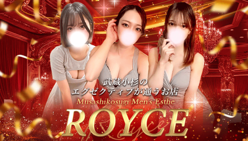 東急東横線武蔵小杉駅にあるメンズエステサロン武蔵小杉『ロイス~ROYCE~|武蔵小杉』は、地域ナンバー1のリピート率を誇る上質な大人の隠れ家リラクゼーションサロンです。メニューは「エグゼクティブコース」の1コースのみで、オイルを贅沢に使用したディープリンパ施術マッサージになります。セラピストは20代前半~後半までの女の子を中心に30名在籍していて、可愛らしいロリ系から清楚なお姉さん系まで様々なタイプが揃っています。セラピストによって異なるオプションサービス1,000~2,000円があります。