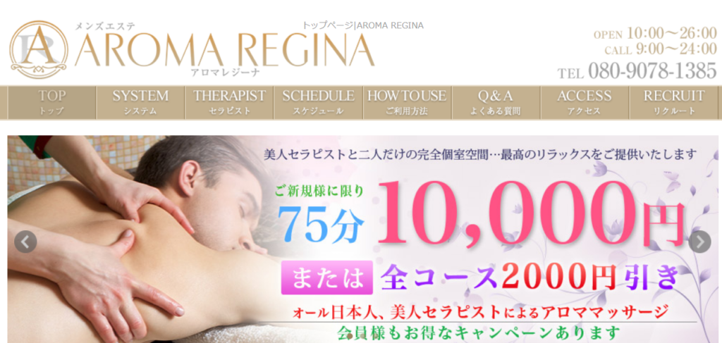 松戸のメンズエステ店「AROMA REGINA(アロマレジーナ)」は、心優しく、礼儀正しい清楚なセラピストを厳選採用しています。完全個室のゆったりとした2人だけの空間で、技術の高い全身オイルトリートメントをしてもらえます。清楚巨乳が好きならここ!